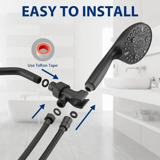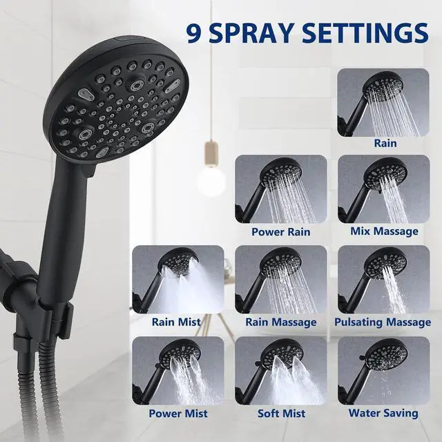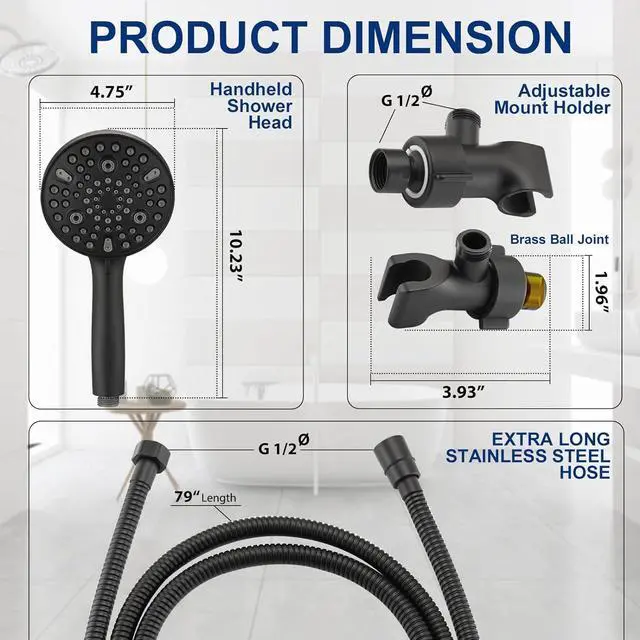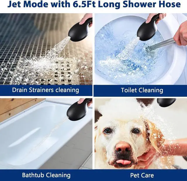 10-Setting Spray - Handheld showerhead has 10 spray modes. Especially power wash mode features large fan-shaped water flow. You can clean disgusting soap scum and dried hair left behind after each shower all in seconds. 79" hose give you the EXTRA extension needed to shave your legs, bathe your kids and pets, and clean the shower.