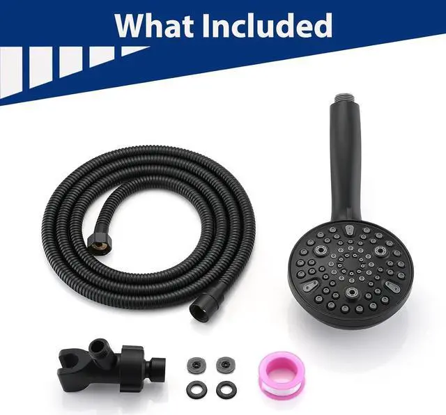Included - 5" Dia handheld shower head, 79" 304 stainless steel hose, 360° rotatable bracket with brass ball joint, user manual, anti-leakage teflon tape and rubber washers.