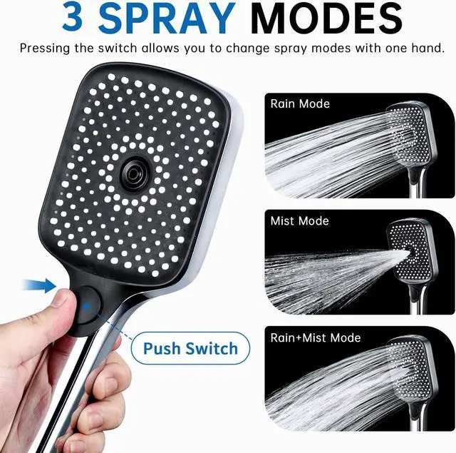 POWER WASH AND 3 SPRAY MODES: With 3 water spray modes to choose from, including a mist mode, you can customize your shower to your liking. The Power wash mode dispenses water at high pressure for better cleaning.