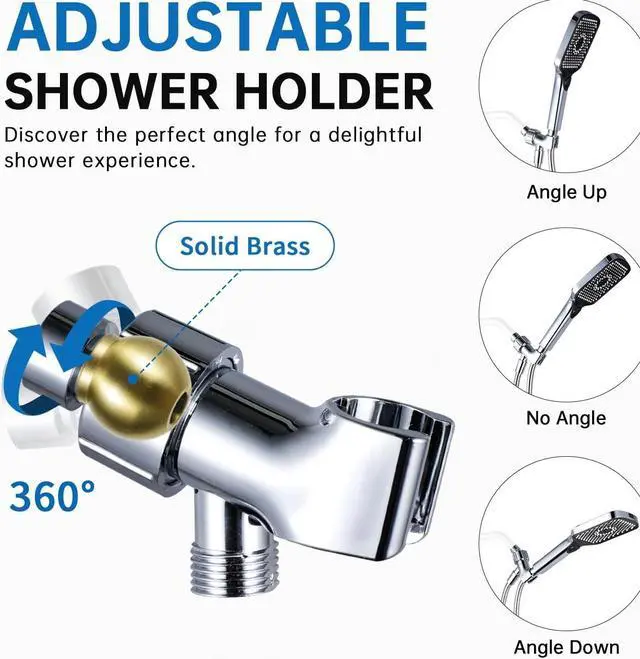 One Hand Adjustable Shower Head: Use the button to switch modes for one-handed operation. 360° Angle Adjustable Bracket allows you to adjust the angle as you wish, which can enhance your showering pleasure.