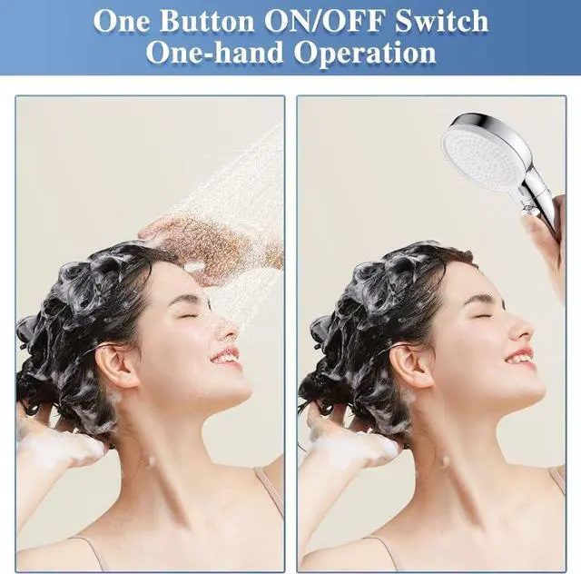 ON/OFF BUTTON FOR WATER-SAVING: Doiliese shower head adds a water saving function with an ON/OFF switch button, easily control the water flow by one press, no need to turn off the valve, compared to traditional shower products, our shower head saves up to 40% of water. This reduces water costs at all times, conserving valuable resources while providing long-lasting showering comfort.