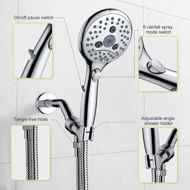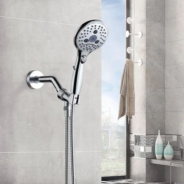 What You Get: 7-Function Handheld Shower, 1.5 -Meter 304 Stainless Steel Shower Hose and 360° Angle-Adjustable Shower Holder. Made of high quality plating process, our wand can effectively prevent rust, improve wear resistance and enhance the role of aesthetics.