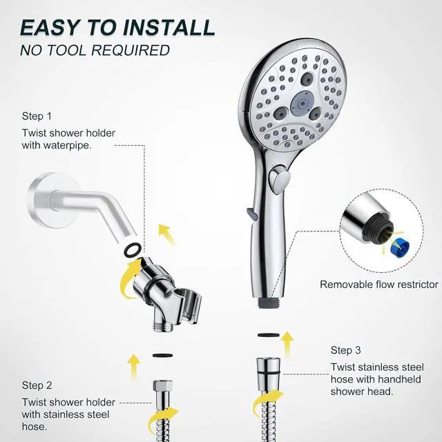 Tool-Free Installation: No tools and plumber are required for installation, just easy hand tightening in minutes. (Notice: Pls don't use Telfon tape while installing)
