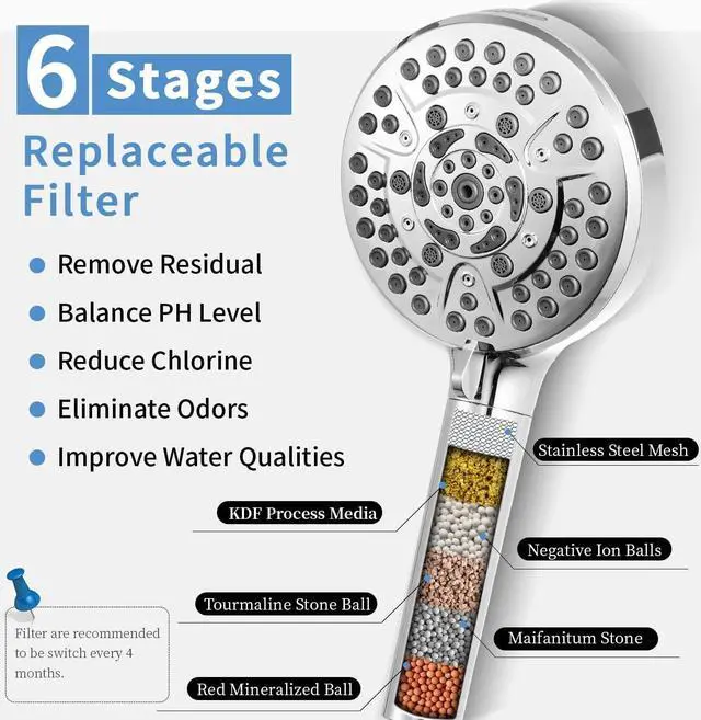 Built-in Filter CartridgeDo you always suffer from dry, itchy skin that never seems to go away? By realizing the impact of the filter cartridge on the body, this detachable shower head filter can filter out many harmful toxins, allowing you and your family to use it with greater peace of mind.