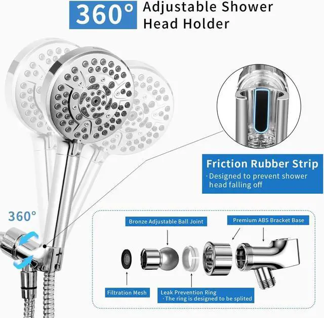 High-Quality Materials + 60-Inch Stainless Steel HoseThis shower head is made of high-quality ABS material and comes with an additional 60-inch flexible hose, ensuring rust-free and non-toxic properties to guarantee a safe bathing environment. It's suitable for use by children and pets at home with peace of mind.