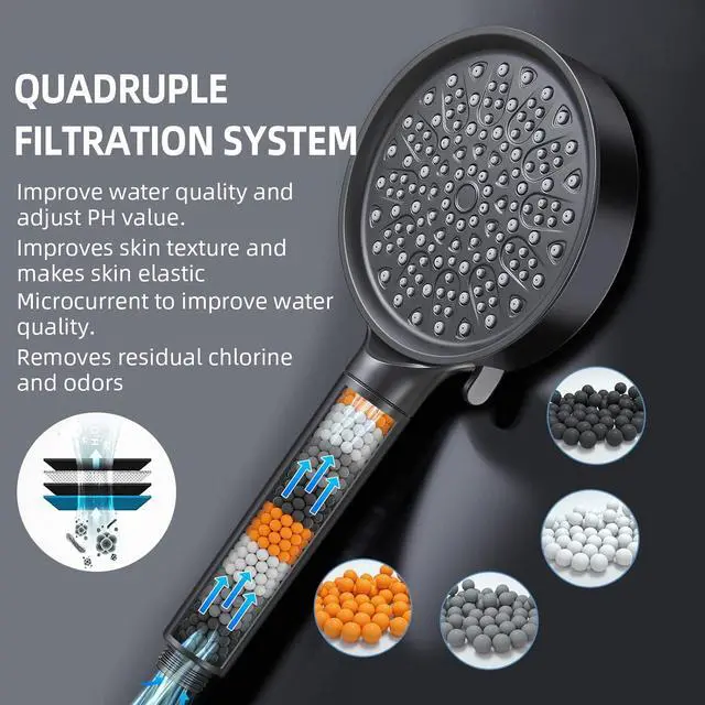 Purify the water: Health is the thing we value most. Our showerhead has a quadruple 15-stage powerful filtration layer. It effectively removes impurities and residual chlorine, heavy metals (lead, mercury, nickel, chromium) and other harmful substances from the water. Enjoy your shower and improve your health at the same time.