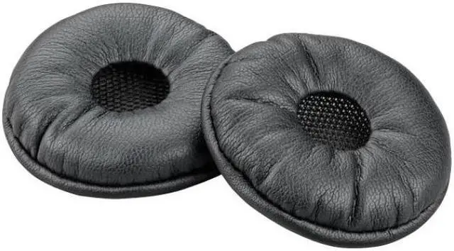 The Plantronics 87229-01 is a pair of black leatherette ear cushions for use with Plantronics Savi W740 headsets.