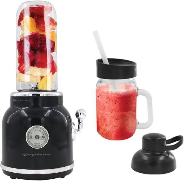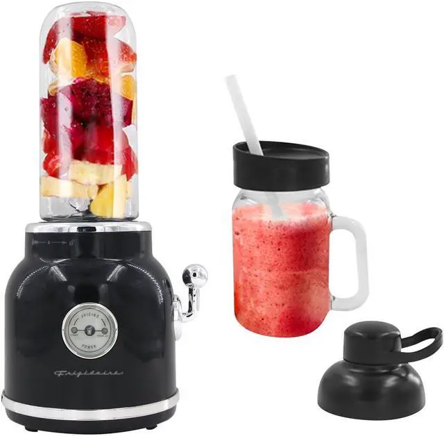 Blend together a refreshing treat with this Frigidaire retro smoothie maker. The high-quality stainless steel blades offer extra durability and ensure a creamy texture, while the power indicator lights up to let you know when this appliance is ready for use. This Frigidaire retro smoothie maker has two speeds for added versatility.