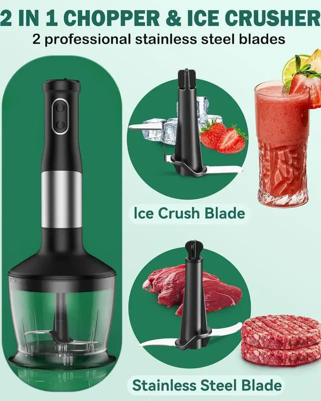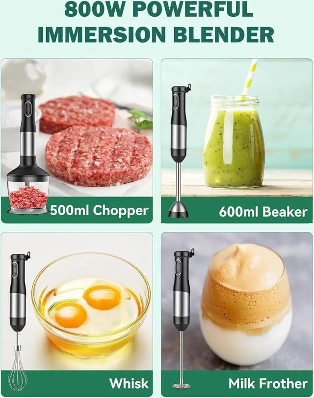 POWERFUL PERFORMANCE AND DURABLE: Handheld blender with 800W Heaviest dust copper motor paired with steel 4 blade and ice crush blade rotation system can handle the toughest blending tasks effortlessly. LINK