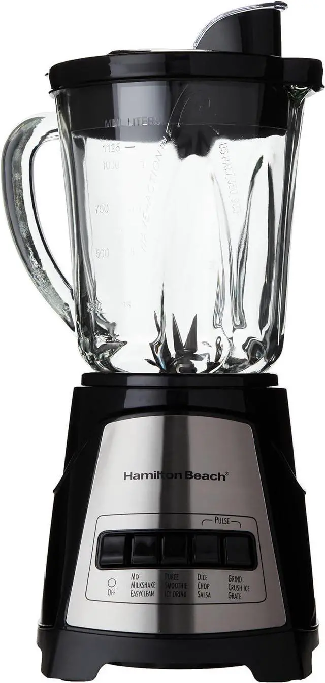 Hamilton Beach 58148 Blender to Puree - Crush Ice and Make Shakes and Smoothies - 40 Oz Glass Jar - 12 Functions - Black and Stainless, 8.66 x 6.5 x 14.69 inches