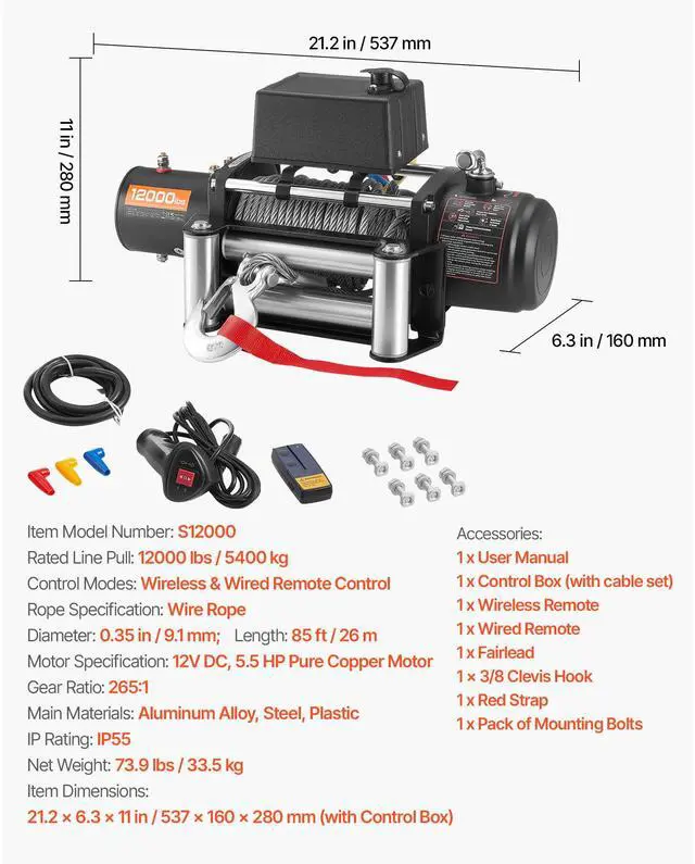 Rope Specification: Wire Rope, Diameter: 7/20 in / 9.1 mm;