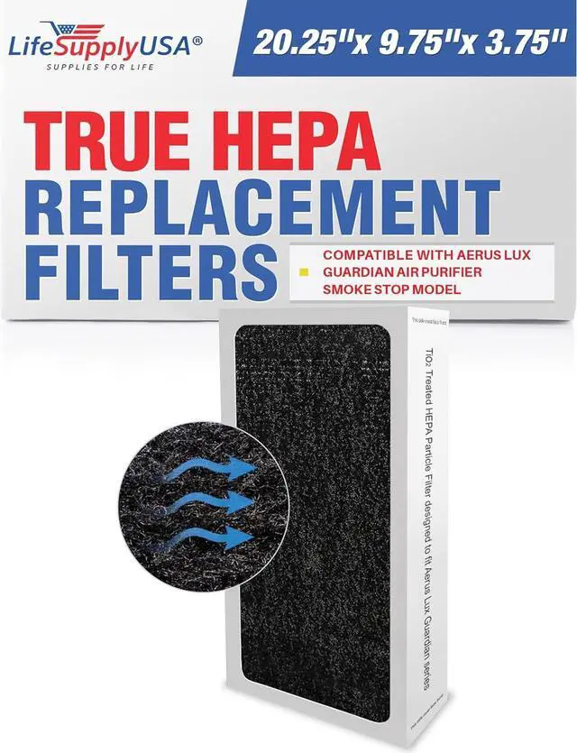 COMPATIBILITY: Compatible with Aerus Lux Guardian Smoke Stop Air Purifier Filters. Please note that this is not an OEM product. This is a replacement product by LifeSupplyUSA, exclusively for sale by LifeSupplyUSA.