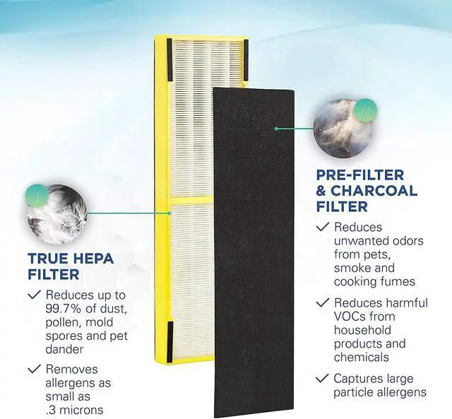 Captures Allergens: Hepa Filter Captures 99.97 % Of Dust And Allergens As Small As 3 Microns Such As Household Dust, Pet Dander, Mold Spores And Plant Pollens