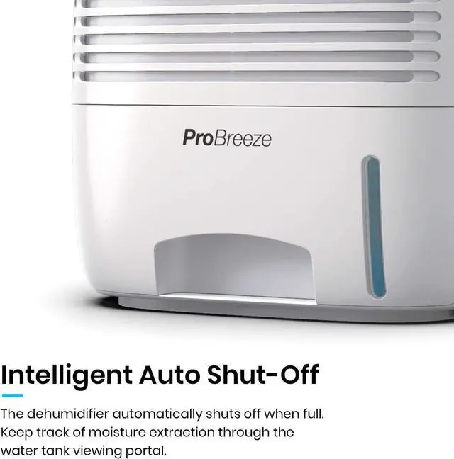 INTELLIGENT AUTO SHUT-OFF: When the water tank reaches maximum capacity the small dehumidifier will automatically shut off and the LED light will turn-on, indicating the water tank needs draining.