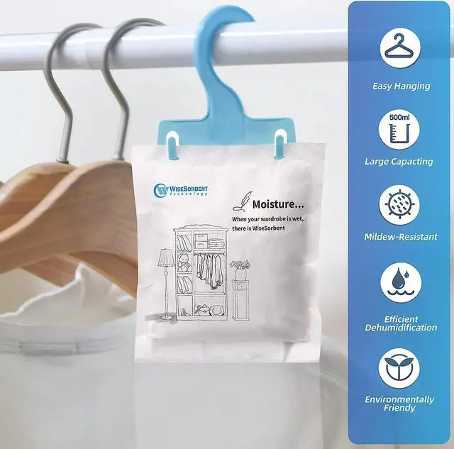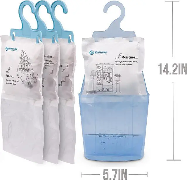 Safe To Use: You can visually tell how much moisture and dampness be absorbed and collected by simply checking the bottom of the bag filling up with liquid from dehumidifying the air. Hang the moisture absorbing bags anywhere for dehumidifying freely. Wisesorb hanging bags provide an easy solution to protecting valuables and cloths from excess moisture.
