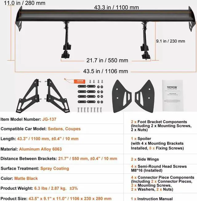 This spoiler is made of lightweight high-quality aluminum alloy, wear-resistant and impact-resistant, easily handling various weather and environmental challenges.