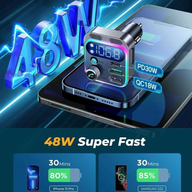 Car FM Transmitter Car Bluetooth MP3 Music Player PD20W Mobile Phone Fast Charging QC3.0 Car Phone Charger PT17