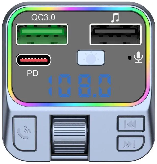Fast Charging New Bluetooth Car Kit Colorful MP3 Bluetooth FM Transmitter and Receiver Mounts Easily on Cars
