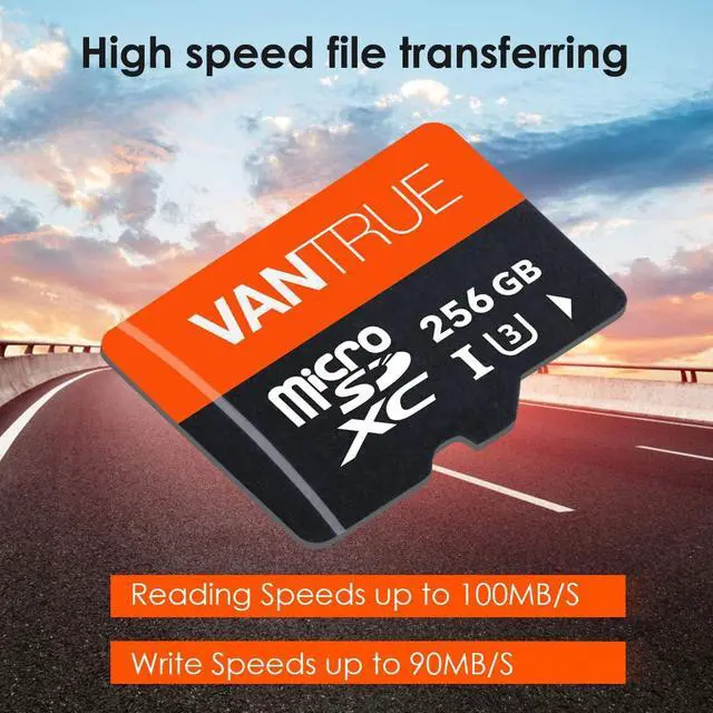 Vantrue 256GB microSDXC Card, USH-I U3 Memory Card with Adapter Meet 4k UHD Video Recording Compatible with Dash Cam, Camera, Mobile Phone, Laptop, Tablet, PC