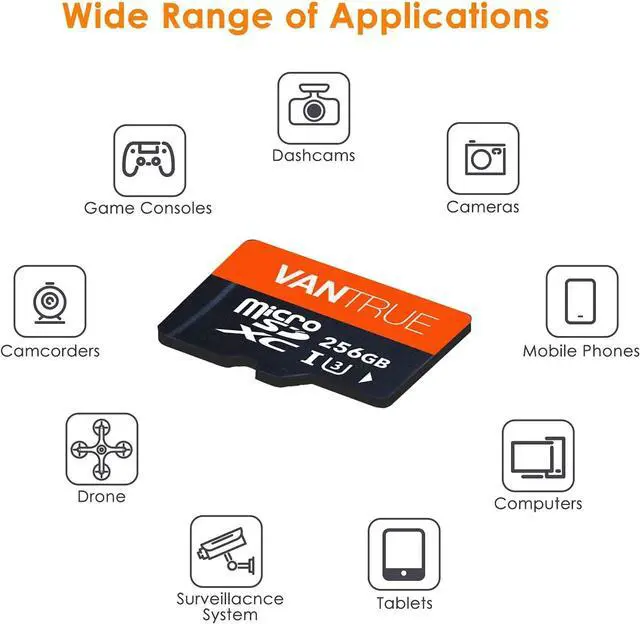 [Wide Range of Applications] This memory card is suitable for many items: dashcams, cameras, mobile phones, tablets, Drone, body cams, security systems, computers etc.