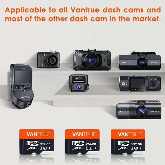 [Made by Vantrue] Vantrue manufactures this memory card with high quality raw materials and technology. Applicable to all dash cam of the Vantrue (Support 512GB Max dash cam ) and most of the other dash cam in the market.