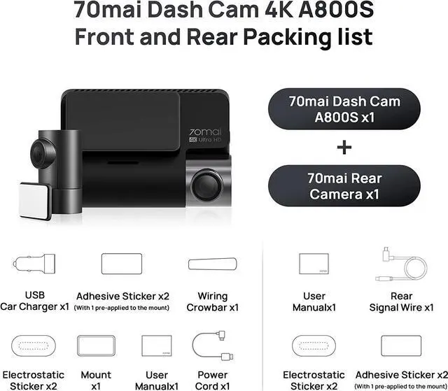 Excellent 4K Ultra HD Dash CamDash Cam A800S is a 70mai flagship camera, using Sony IMX415 sensor and 7-layer all-glass lens designed to achieve the market's real 4K UHD image quality, to provide more vivid and clear images. Power up the engine and get 70mai A800S with you, safety every mile, every moment