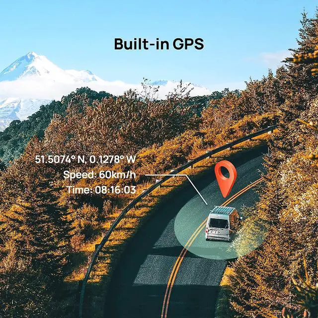 Built-in GPS & Route Tracking Equipped with built-in GPS, 70mai 4K A800S monitors and displays real-time trip data including time, speed, and coordinates. Tracks the exact location of an accident if one should occur, crucial for roadside assistance and insurance claims (Kind