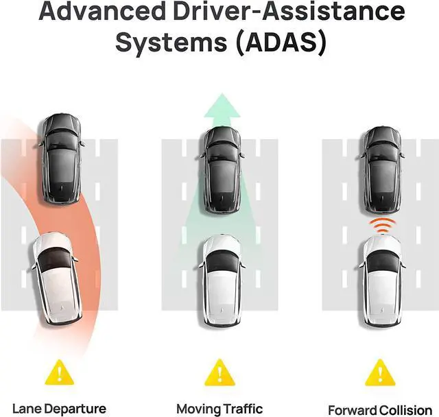 ADAS System Featured Dash CamThe Advanced Driving-Assistance System (ADAS) detects your surroundings and has real-time voice alerts to warn you of safety problems. The camera automatically detects lane markings and gives voice alerts when the car is drifting out of the lane. The dash cam also identifies the vehicle ahead and calculates the speed and distance of the car in front to prevent forward collisions while driving