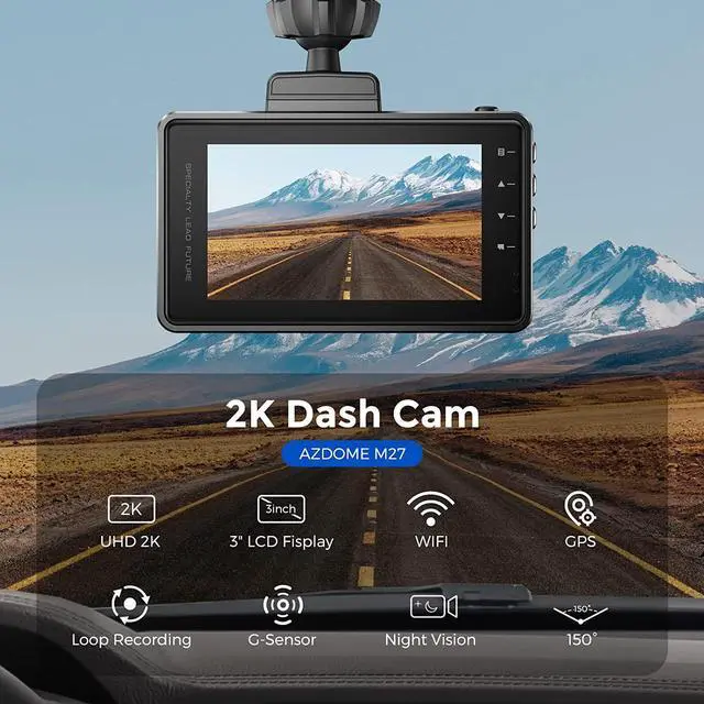 2K 1440P Dash Cam M27 Dash Cam is equipped with 2K (2560x1440P) UHD front camera which coupled with the WDR and F 1.8 large aperture allows them to record and capture every moment clearly even in low light situations and view them on the 3 inch IPS screen display. Supports up to 128GB class 10 - U3 speed micro SD card (Memory card is not included)