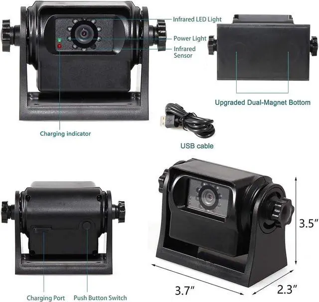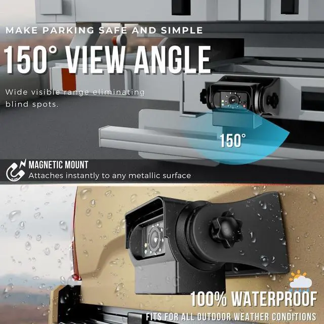 Magnetic Mount This small hitch camera attaches instantly to any metallic surface via extra-strength magnetic base with no hardware get simple setup and repositioning to suit your needs. 4 Powerful Rare Earth Built-in Magnets at bottom (15 lbs of pull for each) let you mount the wireless RV camera on vehicle's tailgate or any metal spots.