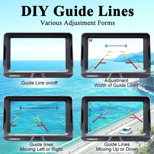 DIY Parking Grid lines: Vehicle backup cameras can adjust the parking line's width, moving them Left/Right/Up/Down to make them portray real conditions, or you can also turn the parking guide lines off you prefer.