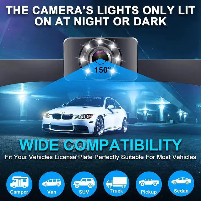 Warm Hint The adapter can be hidden on the back of the license plate. 149 wide viewing angle, large wide angle, provide you with greater visual security.