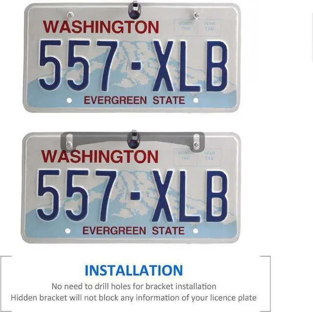 Mini Size Rear CameraJust install the rear camera behind the license plate without drilling and holes, and the hidden bracket will not block your license plate. Perfect for vehicles such as Pickup truck, Van, SUV.