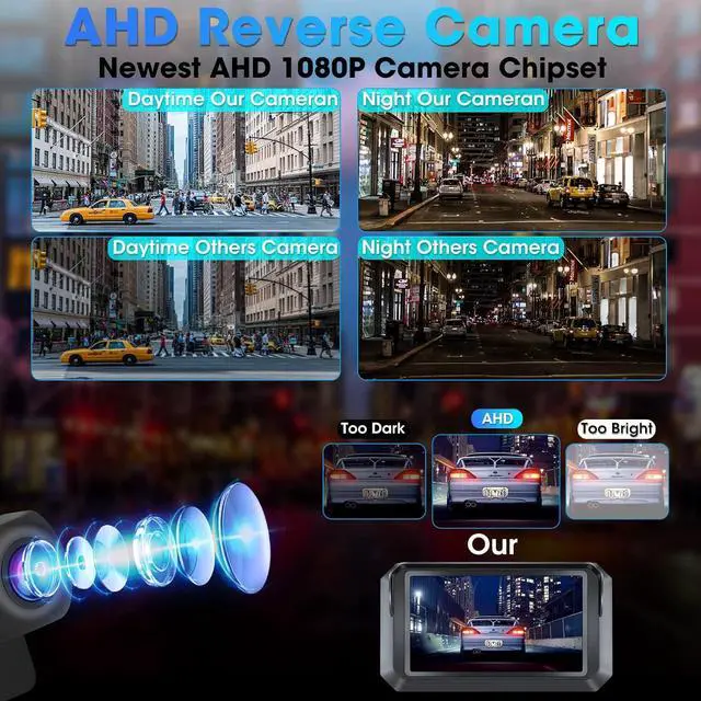 Unique 5 inch Backup Camera SystemWe have received feedback from customers that a 4.3" display was too small and the 7'' display was too big to took up too much sapce for their car! So we developed the only widescreen 5" display reversing camera kit on the market, Equip with a dedicated AHD 1080 wide-angle rear camera. Not only does it not take up too much space, but it also offers a wider horizontal view and and sharper and higher quality images when reversing!