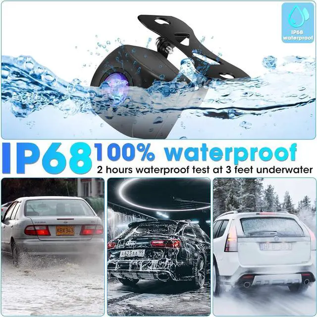 IP68 Waterproof & Perfect 140°Wide Angle IP68 waterproof, dustproof and sandproof in line with international standards. With full glue filling process, water vapor penetration can be avoided even in heavy rain. Never worry about water entering the camera during the rainy season. Excellent waterproof and impact resistance, effectively extending the life of the car rearview camera. With a perfect 140° wide-angle, no distortion effect, effectively eliminate blind spots, closer to the actual scene.