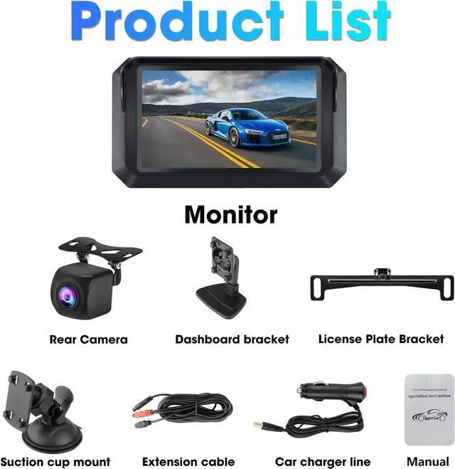 Humanized design & 12 Months WarrantyComes with a sunshade for a clear view of the back display even in direct sunlight. Also Includes a stand and a suction cup mount. The monitor can be fixed to the center console/windshield. The silicone suction cups are highly absorbent and can be reused many times after cleaning for excellent durability. We provide 24-hour online customer service, 30-day refund guarantee, and 12-month warranty. Please feel free to contact us if any problems.