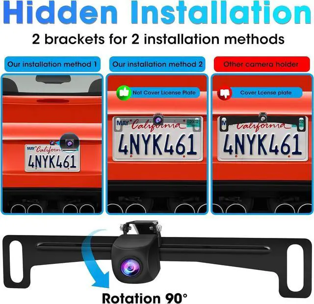 Universal License Plate Holder, without DrillingJansite reverse camera kit for vans comes with 2 types of backup camera mounting brackets. Exclusive number plate holder that helps you easily mount the rear view camera on the front and rear of your vehicle without drilling and will not cause any damage to your car. When using a traditional rear camera mount, the field of view is wider and there are fewer blind spots. Two installation methods are available.
