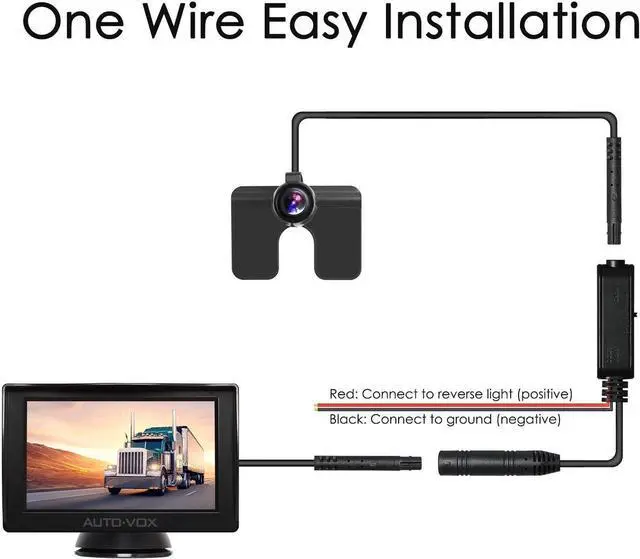 One Wire Easy Installation No More Complex Wiring Problem. The 4.3 LCD rearview monitor connects the backup camera by one video cable, both the monitor & camera get power from 12V reversing light.
