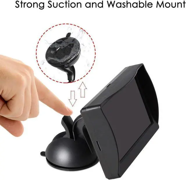 Strong Force and Reusable Car Monitor Mount The truck backup camera monitor can be mounted tightly on windshield or dashboard by the strong silicone suction cup. If the suction cup become dirty and non-sticky after long time use, you can dismount and reuse it after a cleaning.
