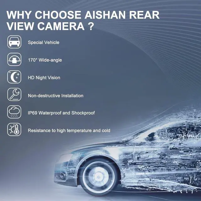 IP69 Waterproof & Fog ResistantCar Rear View Camera designed with fully sealed glue filling craft, you absolutely no need to worry about water, fog or mist inside.. And the reversing camera adopts glass scene instead of plastic screen to make sure clearer images and longer life.
