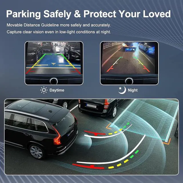 Movable Distance Guideline Distance guideline can help you to reverse and park car more safely and accurately. Our backup camera applys 1/4 inch PC1058D chip which can show the track guide without any additional devices, guideline will change automatically according to cars movement, no need to worry about reversing and parking your car anymore.