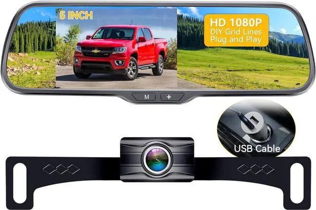 AHD 1080P Mirror Monitor Camera - The IP69 waterproof rearview mirror backup camera captures clear AHD 1080P pictures with With a wide viewing angle of 150 degrees, blind spots are minimized.