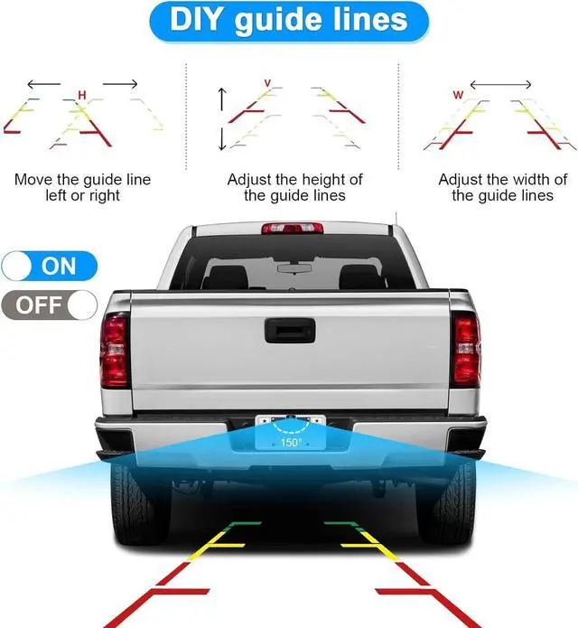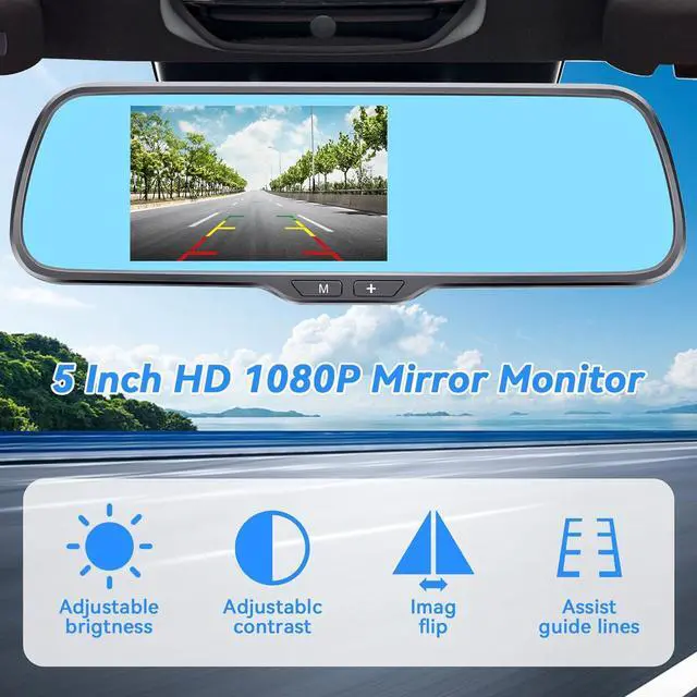 Multi-Function Rear View Mirror Monitor - The back up camera systems for car allows the adjustment of parking lines' width and position to suit your real scenarios. You can turn off the parking guide lines if you prefer.