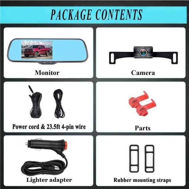 Easy Installation - Simply plug the Rear View Mirror Monitor into the cigarette lighter and power the backup camera for car with the reversing light of your vehicle to get a stable and clear image.