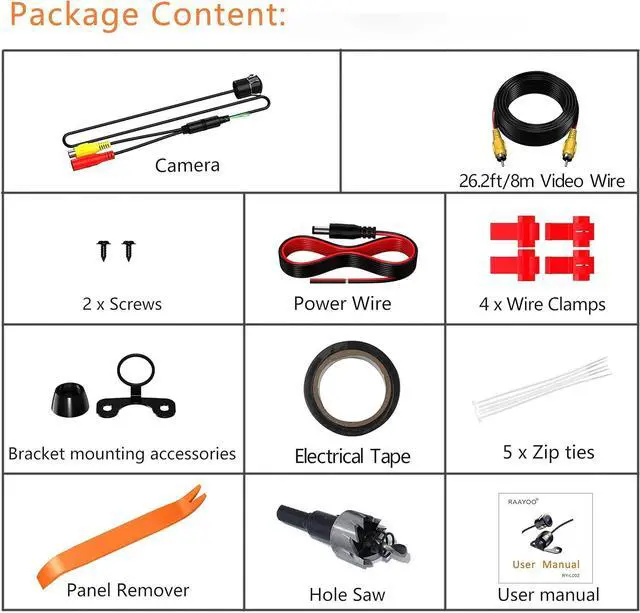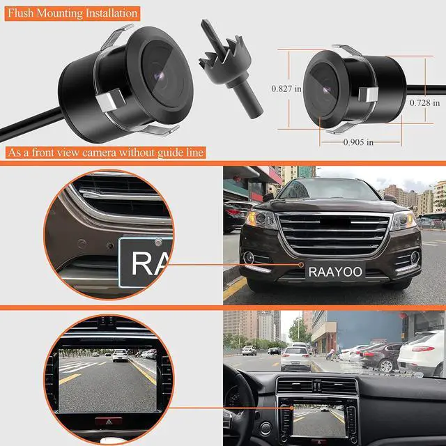 Brand RAAYOO Screen size 2 Inches Product Dimensions 19L x 19W x 23H millimeters Lux rating 0.1 Lux Compatible devices Car Console Installation type Flush Mount Voltage 12 Volts Lens type Wide Angle Real angle of view 170 Degrees