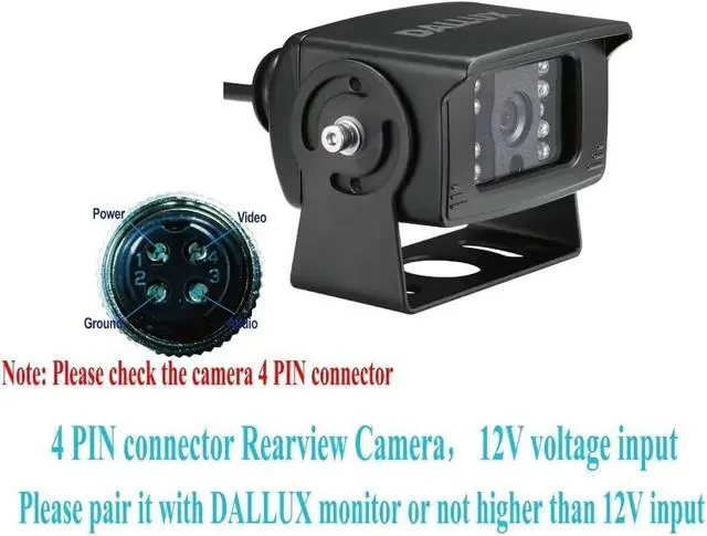 Premium Quality Reverse Camera Case Design: Its finished in a unique zinc metal casing, stainless steel screw makes it without rust problem. This RV rear view camera is 4-Pin Video Connector (Please check your vehcile monitor cable which connect the camera is compatibel before you buy) - Designed for Car/Truck use with 12 Volt Systems.