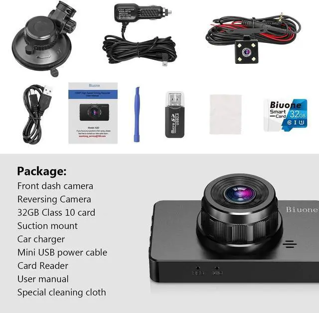 Front and rear dash cam with 32G Card, already inserted in Dash Car Camera. As a seller of dash cam and suppliers of other car camera sellers, we have collected the earliest data and feedback to upgrade our products, improve problems, and provide a 100-point great after-sales experience. or you can get the longer extension cable for the rear camera if you need it. ( it is 6M's rear cam cable in the package) Please trust us, trust your choice.