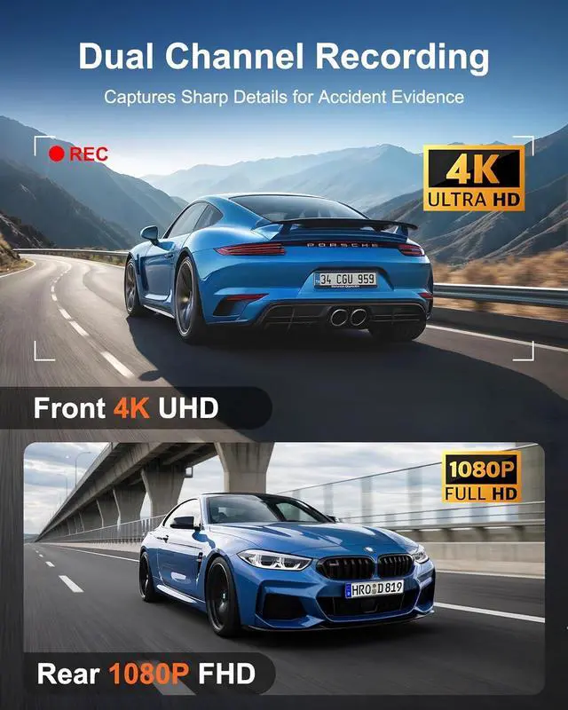 | Feature 07 | 4K Front + 1080P Rear Resolution |