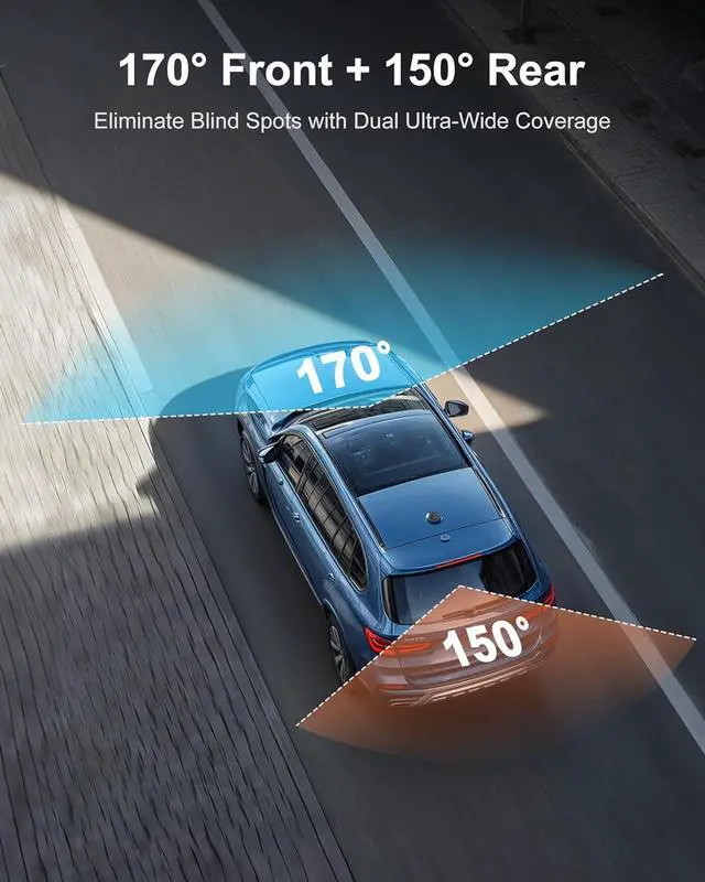 | Feature 08 | 170° Front + 150° Rear Wide Angle |