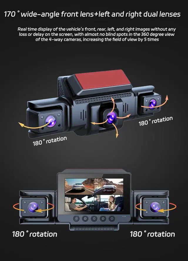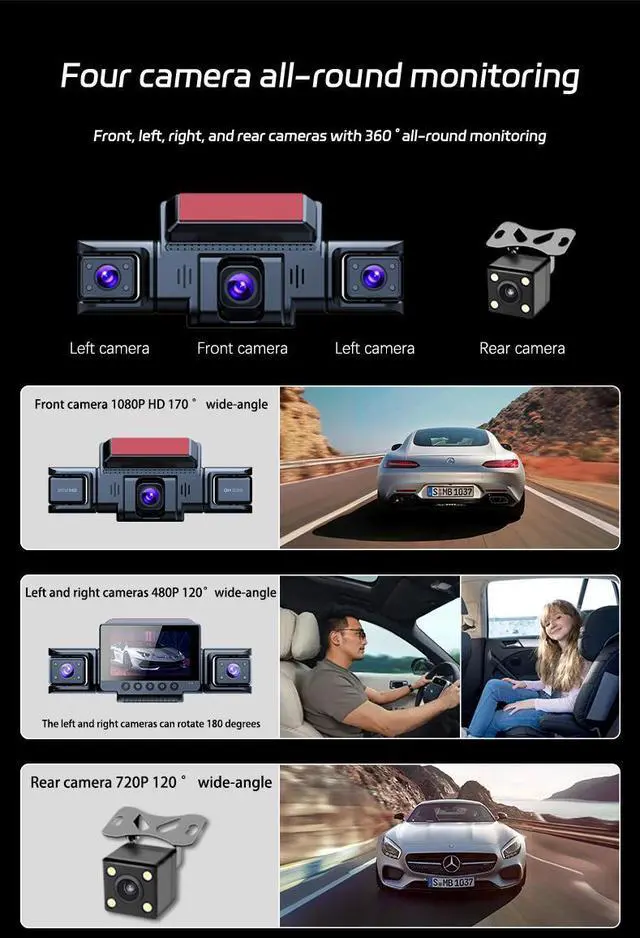 Mini WIFI 4 Channel 1080P 360 Dash Camera 8 Infrared Light Night Vision 170 Degree with Rear Lens Car DVR 24H Parking Monitor